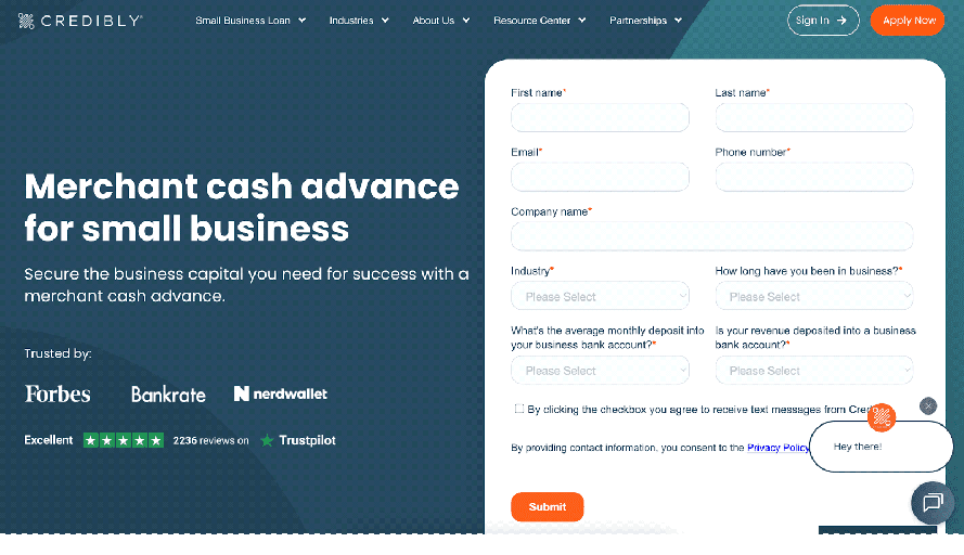 Specialization – merchant cash advances and short-term loans for retail, restaurants, beauty salons. If your business accepts credit cards and has stable daily turnover, Credibly will consider the application even after bankruptcy.