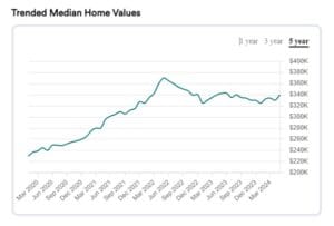 To give you an idea, in May 2024, the median home price hit a staggering 47% increase from just five years ago in 2020, becoming $340,000.